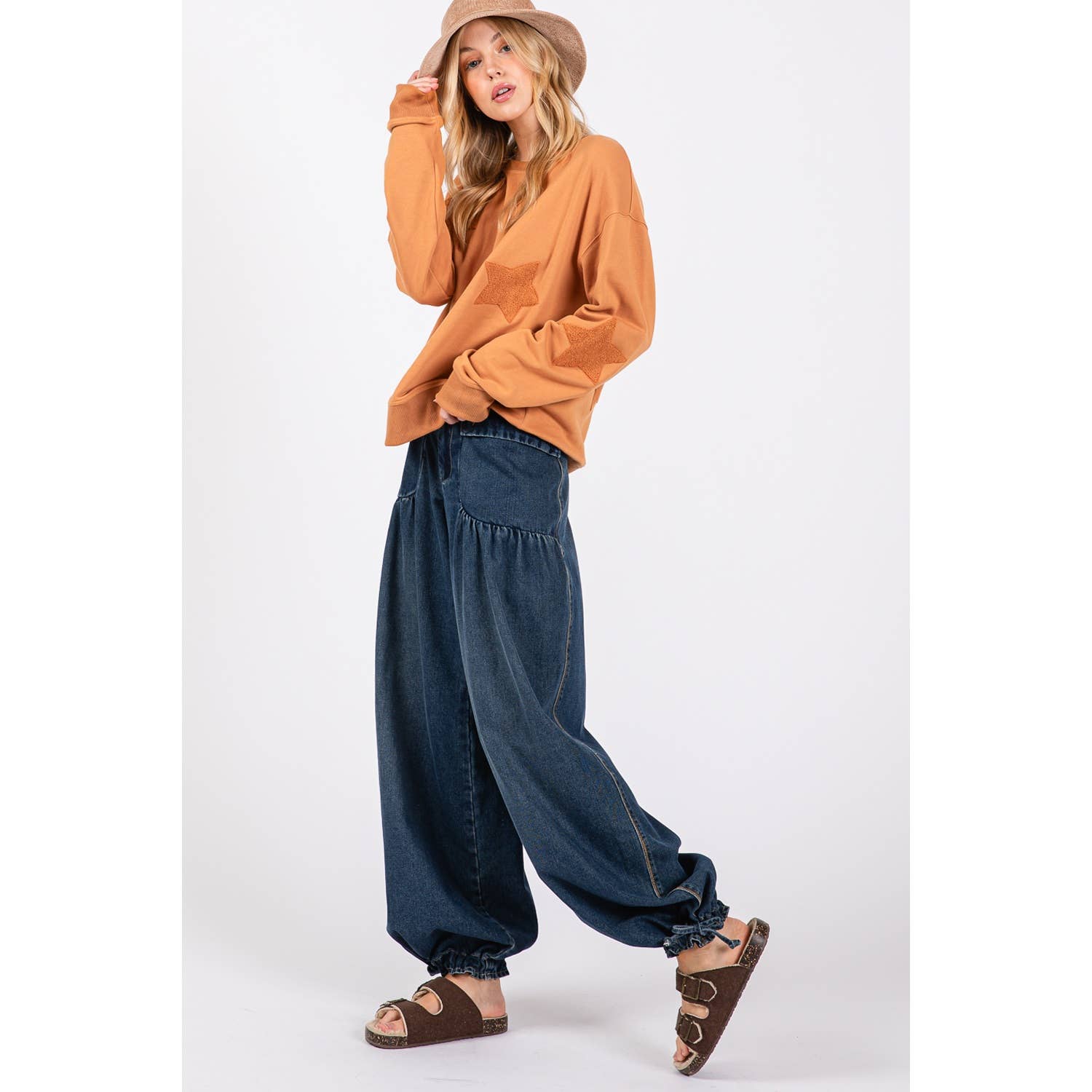 MID-RISE BALLOON DENIM JEANS WITH POCKETS